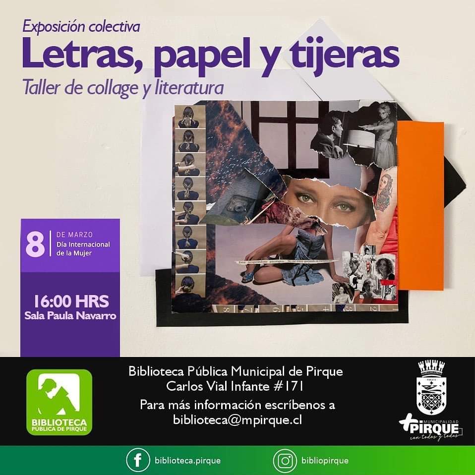 El día 8 de marzo a las 16:00 horas se inaugurará la exposición Letras, Papel y Tijeras, en la sal Paula Navarro, de la Biblioteca municipal.