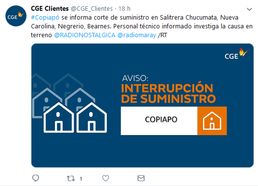 Esta información fue comprometida en su cuenta de Twitter @CGE_Clientes para ser entregada a Portal Pirque vía correo electrónico el cual hasta ahora no se ha recibido.