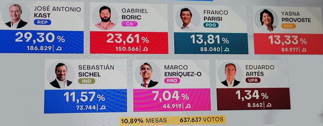 Esto deja en Pirque para las primeras mesas, un conteo a boca de urna que se estrecha entre los candidatos Kast y Boric con los dos primeros lugares. En el caso del local El Llano 1 y 2, habría una leve preferencia para el candidatos José Antonio Kast con un 29,68% y para Boric un 24,47%. En cambio en el caso del Liceo El Principal habría una diferencia mínima entre Boric con un 25,40% y Kast con un 24,29%. En tanto, el local el Colonial Boric se impone con un 32,17% mientras que Kast obtiene un 28,07%.