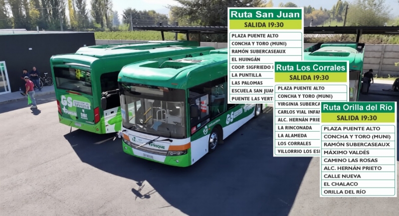 Los servicios comenzarán a operar desde el lunes 30 de marzo, con salida programada a las 19:30 horas. El municipio detalló tres rutas que conectarán Plaza Puente Alto con distintos sectores de la comuna.