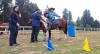 Si bien la colisión fue menor, el contacto desestabilizó al Suzuki, que perdió el control, avanzó unos treinta metros, chocó contra una reja perimetral y la atravesó, cayendo a una calle ubicada más abajo, Los Mirlos, con una diferencia de nivel de aproximadamente cuatro metros de altura y una distancia de unos 60 metros entre ambas vías, pasando entre grandes árboles de eucalipto.