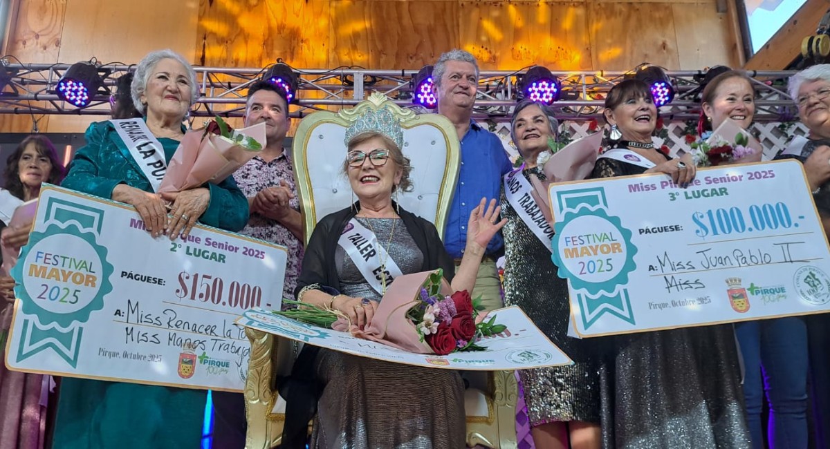 En tanto, la corona de Miss Pirque Senior 2025 recayó en Margot Galaz Briones, del Taller Artístico Cognitivo del CESFAM Dr. José Manuel Balmaceda. El segundo lugar, en un inédito empate, fue para Magdalena Sánchez (Miss Renacer La Puntilla) y Olga Moya (Miss Las Manos Trabajadoras); el tercer lugar lo obtuvo Rosita Tenorio Tenorio (Miss Juan Pablo II). Además, fueron reconocidas María Fabiana Molina (Miss Popular), Juanita Parraguez (Miss Amistad) y Laura Ríos (Miss Diseño Reciclado).