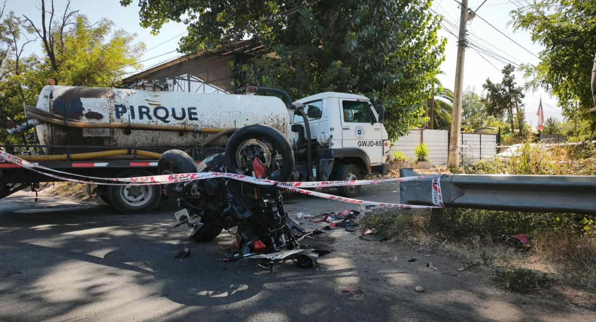 Un grave accidente de tránsito se registró poco antes de las 9:00 horas de la mañana en la intersección de avenida Alcalde Hernán Prieto con camino Santa Cecilia. En el lugar colisionaron una motocicleta y un camión limpiafosas perteneciente a la Municipalidad de Pirque.