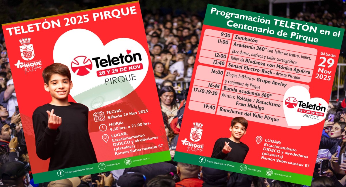 Este sábado 29 de noviembre, Pirque será escenario de una nueva versión de la Teletón local, actividad que este año se integra a la conmemoración de los 100 años de la comuna. La jornada incluirá presentaciones artísticas, talleres y espacios de encuentro familiar, con el objetivo de promover la participación comunitaria y recaudar aportes para la campaña solidaria.