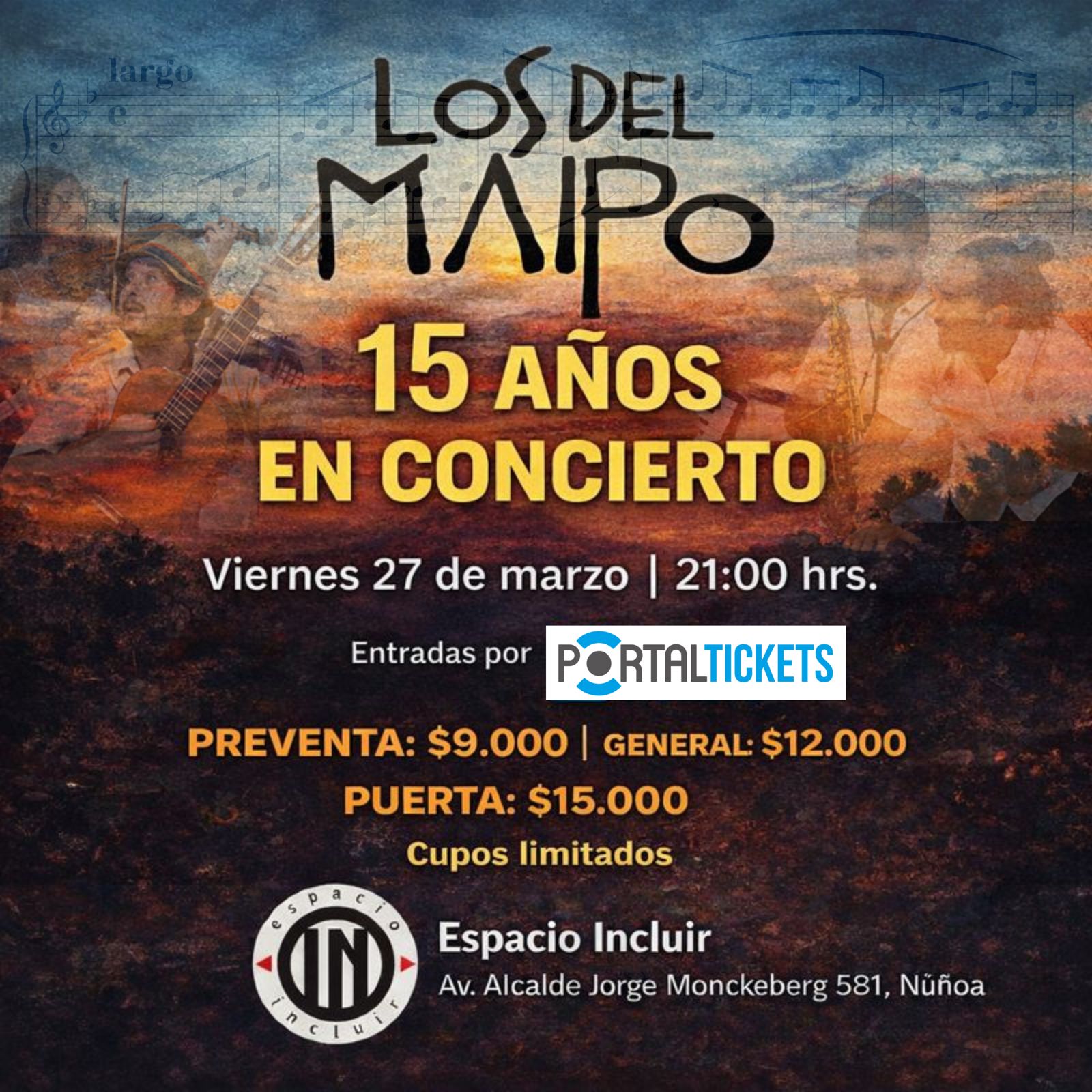 LINK ENTRADAS: https://www.portaldisc.com/evento/losdelmaipo15anos