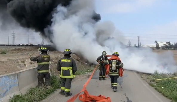El incendio se encuentra en pleno desarrollo en Caletera Acceso Sur altura Santa Rosa. La nube negra puede ser vista desde varias comunas.